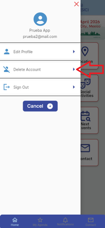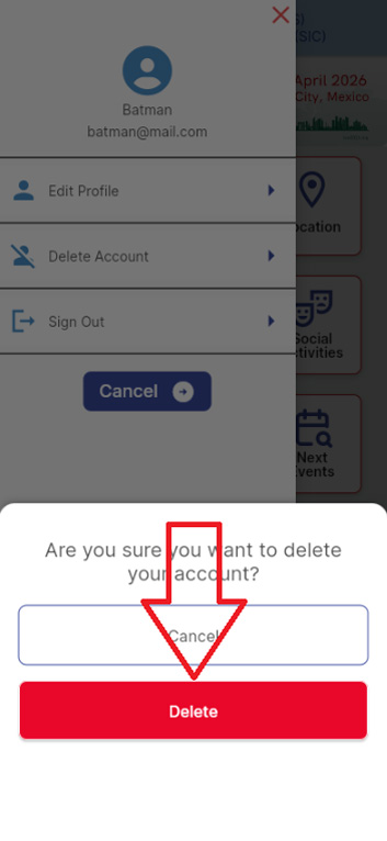 3.- Confirm that you wish to delete your user account by selecting the "Delete Account" option.
